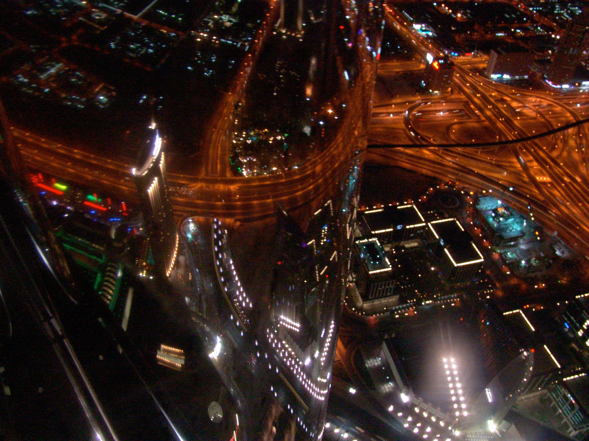 In a city where mirrors, reflection, neon and electric light prevail, just a little imagination is enough to go from reality to fiction. these images were taken from the top of the Burj Khalifa tower at night